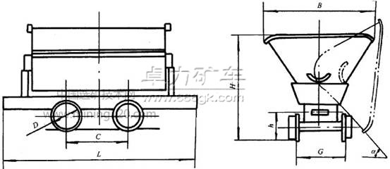 b)主要技術(shù)參數(shù):容積、軌距、外形尺寸(長×寬×高)、最大裝載量、牽引高、最大牽引力、車體重量;