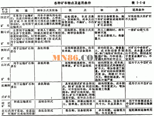 (6)底側(cè)卸式礦車比底卸式礦車優(yōu)點多,應(yīng)優(yōu)先選用。